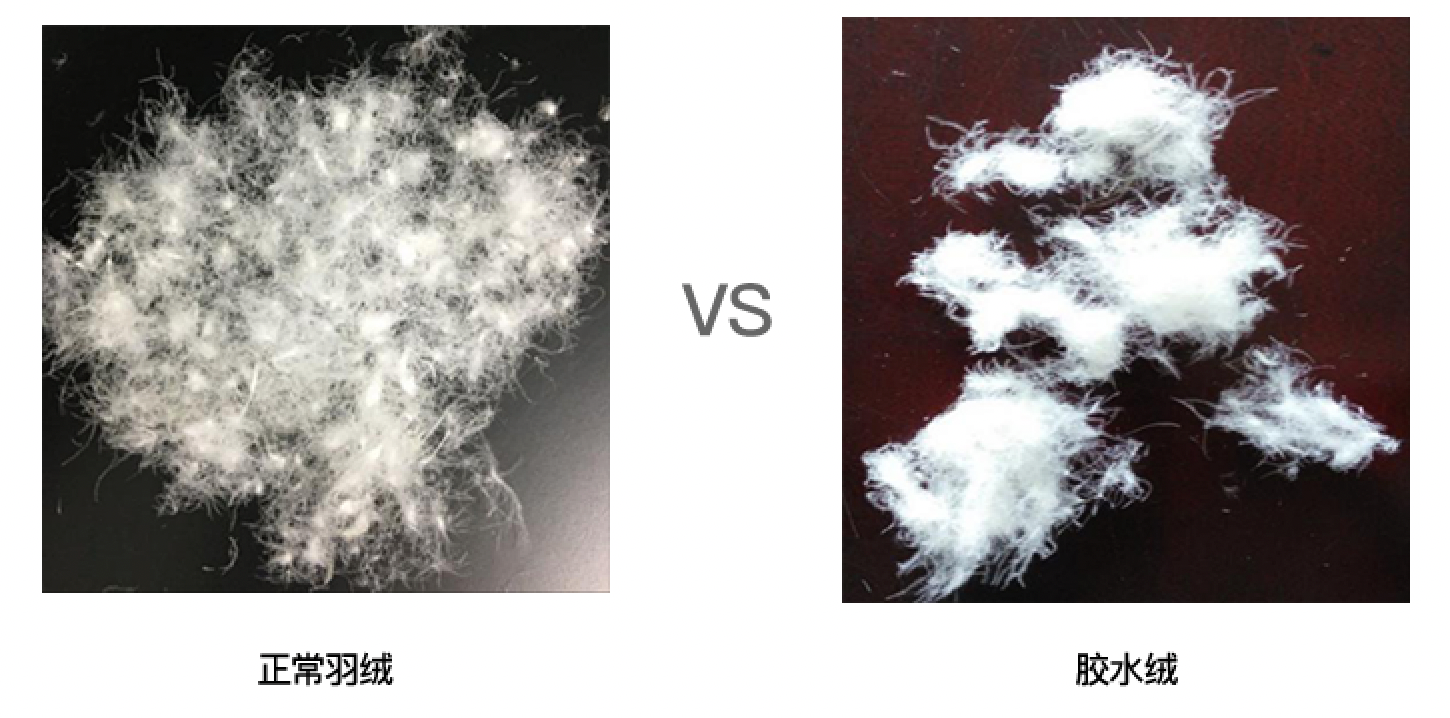 与天然的羽绒相比,“胶水绒”存在气味大、易钻绒、蓬松度不稳定、无法水洗等品质问题。还存在粉尘大、化学残留物等安全隐患。使用胶水绒作为羽绒寝具的填充,不仅会影响羽绒寝具的舒适体验,而且还会威胁到消费者的健康。